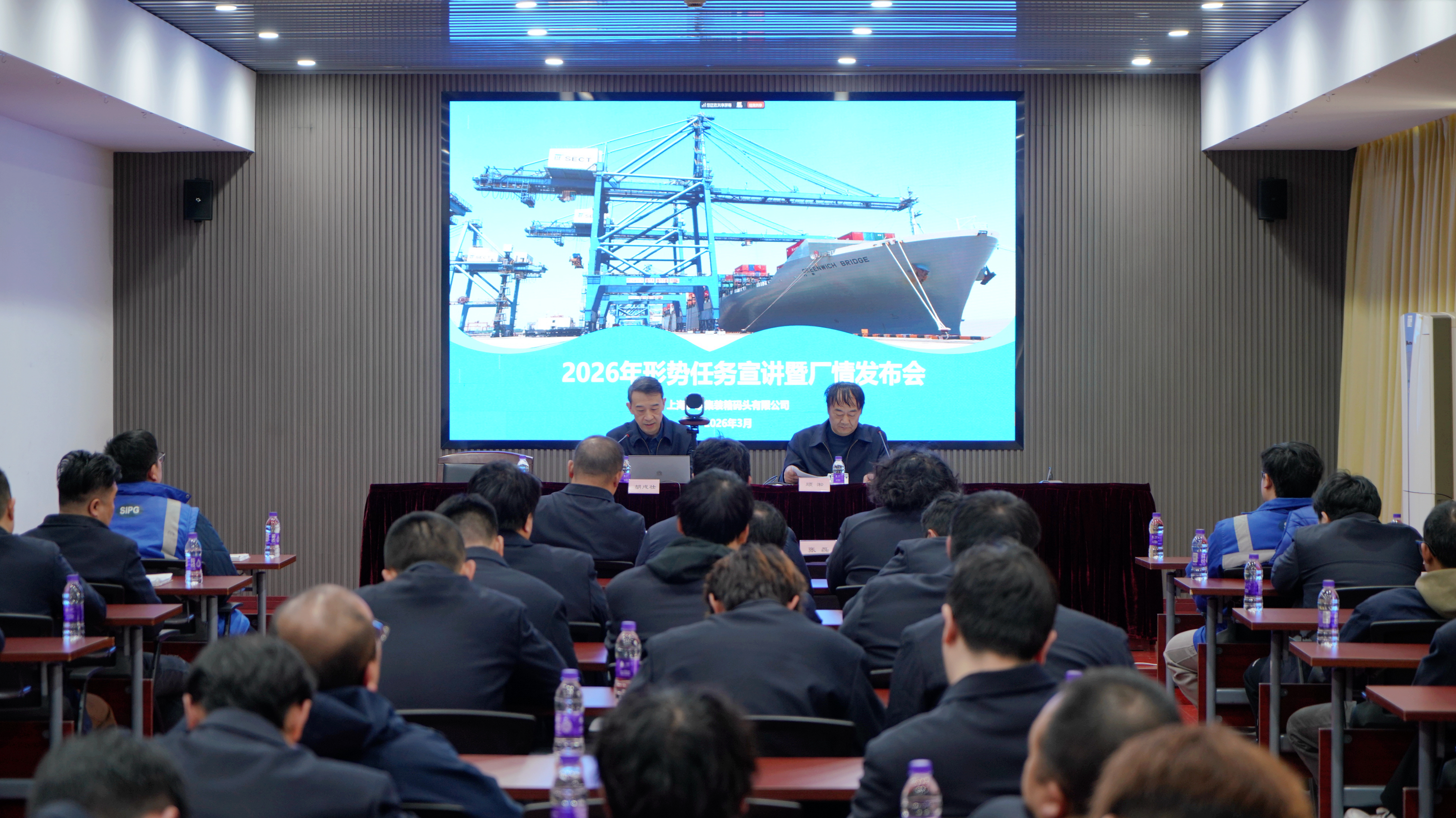 本次宣讲回顾了集团和公司在2025年取得的主要成绩,特别是在安全管理、生产运营、技术赋能、队伍建设等方面成效显著,充分彰显了集团以及公司在新时代背景下践行强港使命的担当与作为。公司党政领导就2025年多项生产运营指标取得的突破向全体员工致以诚挚感谢,并对2026年工作重点作出部署,一是要强化党建引领,将党的政治优势转化为发展动能,驱动公司中心工作高质量发展;二是要统筹生产与安全,在着力提升码头整体作业效率的同时,全面强化安全管控、筑牢全员安全意识;三是要深化创新融合,推动传改项目拓展成效,不断增强港口运营核心竞争力;四是要加强精益管理,倡导全员“降本增效”理念,着力培养符合公司高质量发展需要的复合型人才。同时,会上指出当前全球经贸不确定性增强,公司发展机遇与挑战并存,激励全体员工要在变局中坚定信心、主动作为。